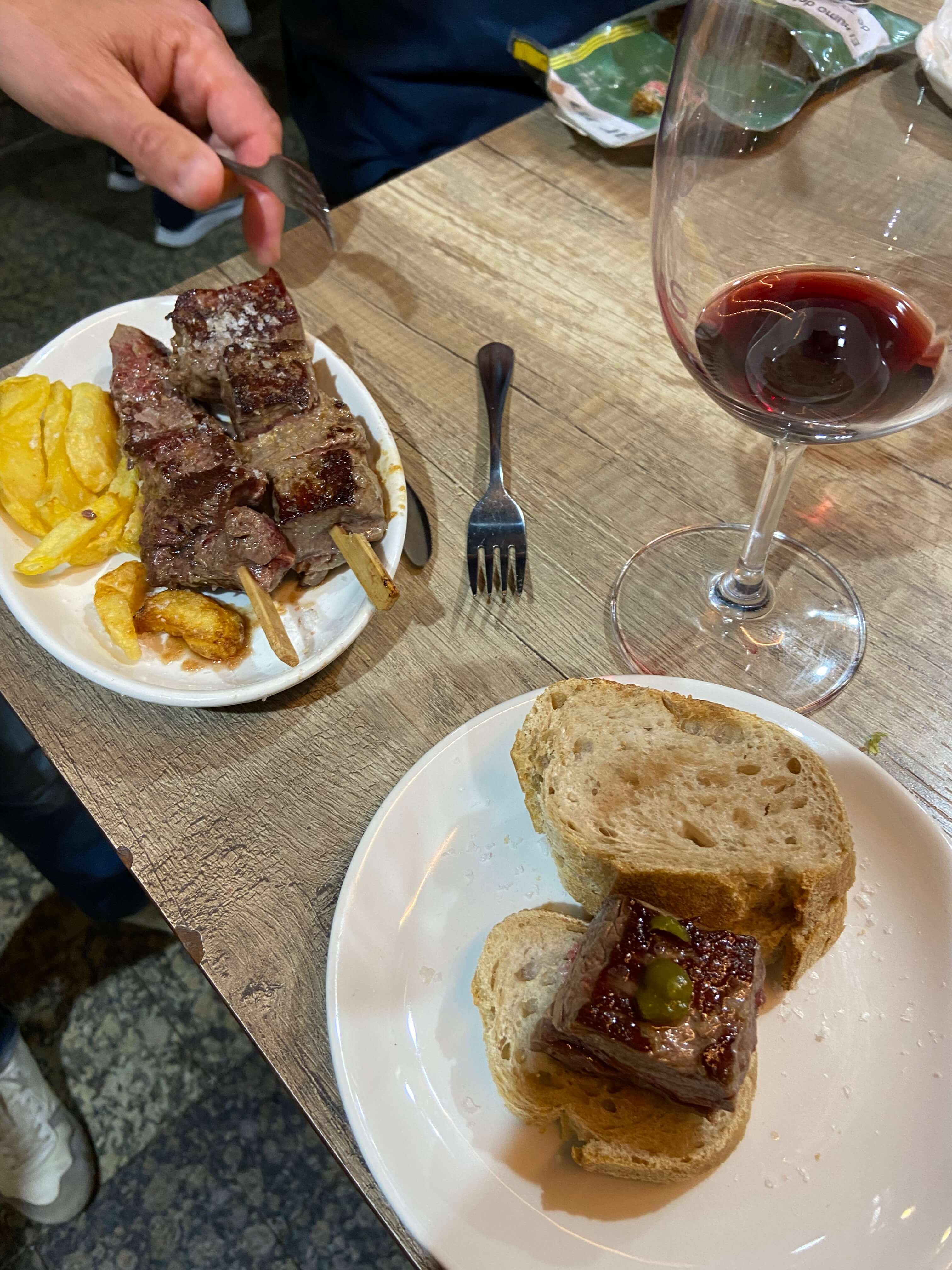Gandarias is a bit of a tourist hot spot, making it rather chaotic, but it’s so worth going for any number of the dishes, including one of my favourites, the tiny sirloin steak pintxo (solomillo) and the T-bone steak skewer (brocheta de chuleta).