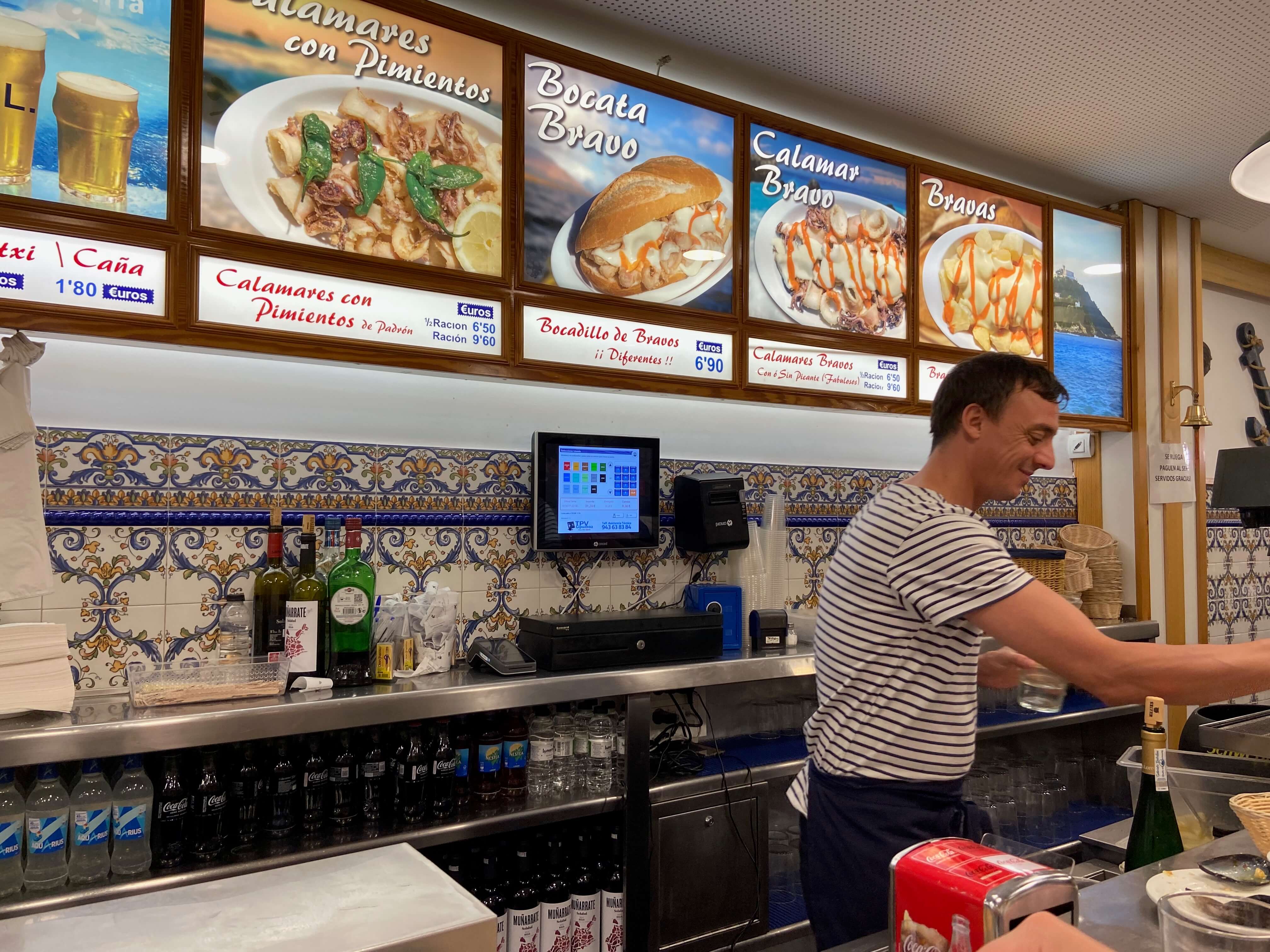 In San Sebastian, bars very often have something on the counter that you can order at any time (these are cold), and when the kitchen opens, you can start to order hot stuff prepared in the moment.