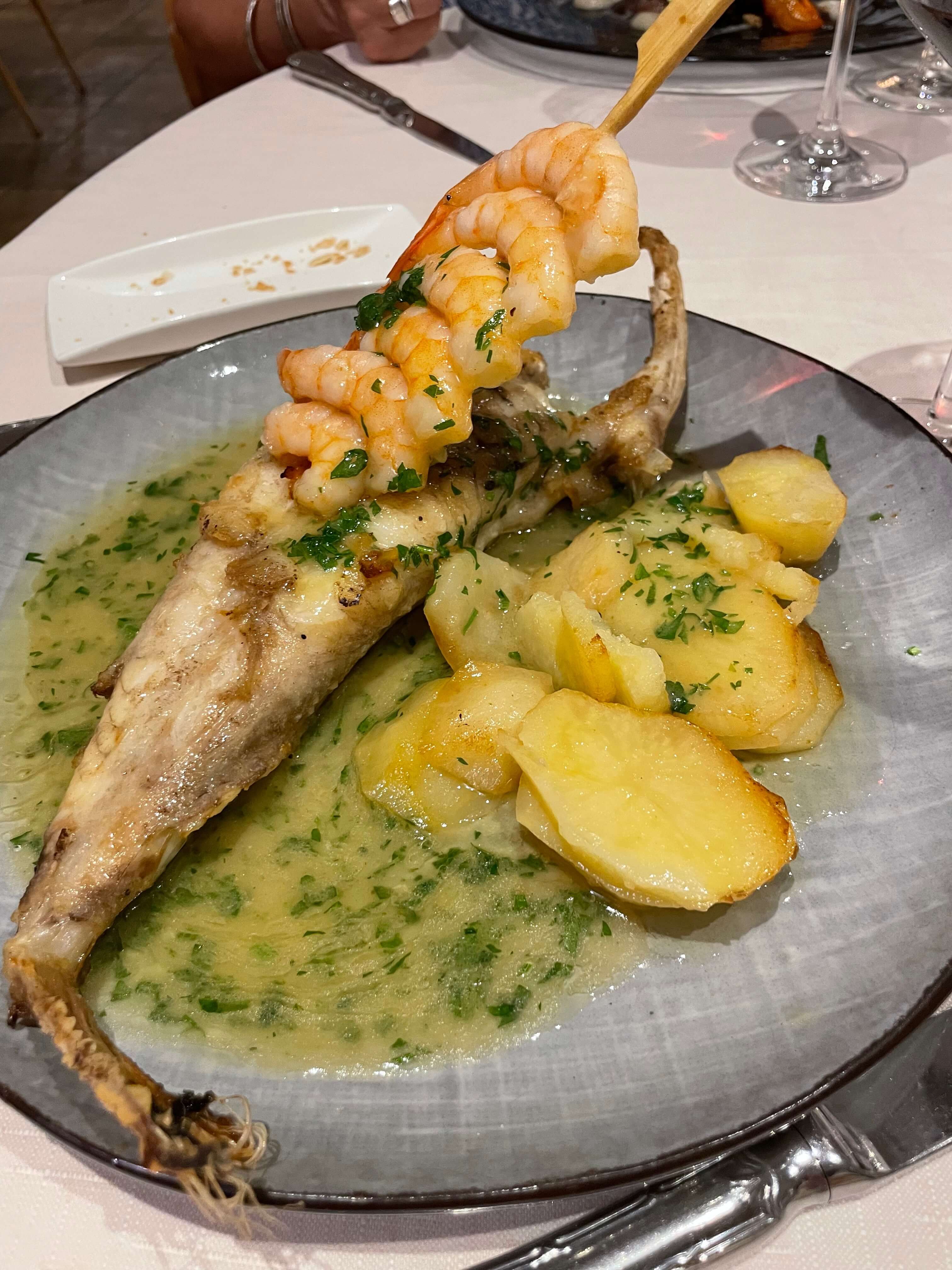 Hake: merluza a la plancha (grilled), merluza a la donostiarra (in white wine sauce), merluza rebozada (battered/breadcrumbed)