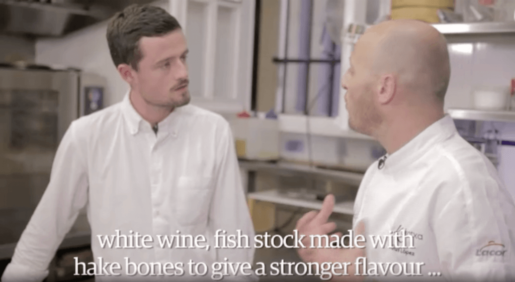 Check out Head Chef Dani López whip up merluza en salsa verde – hake in green sauce, in the Guardian video below: