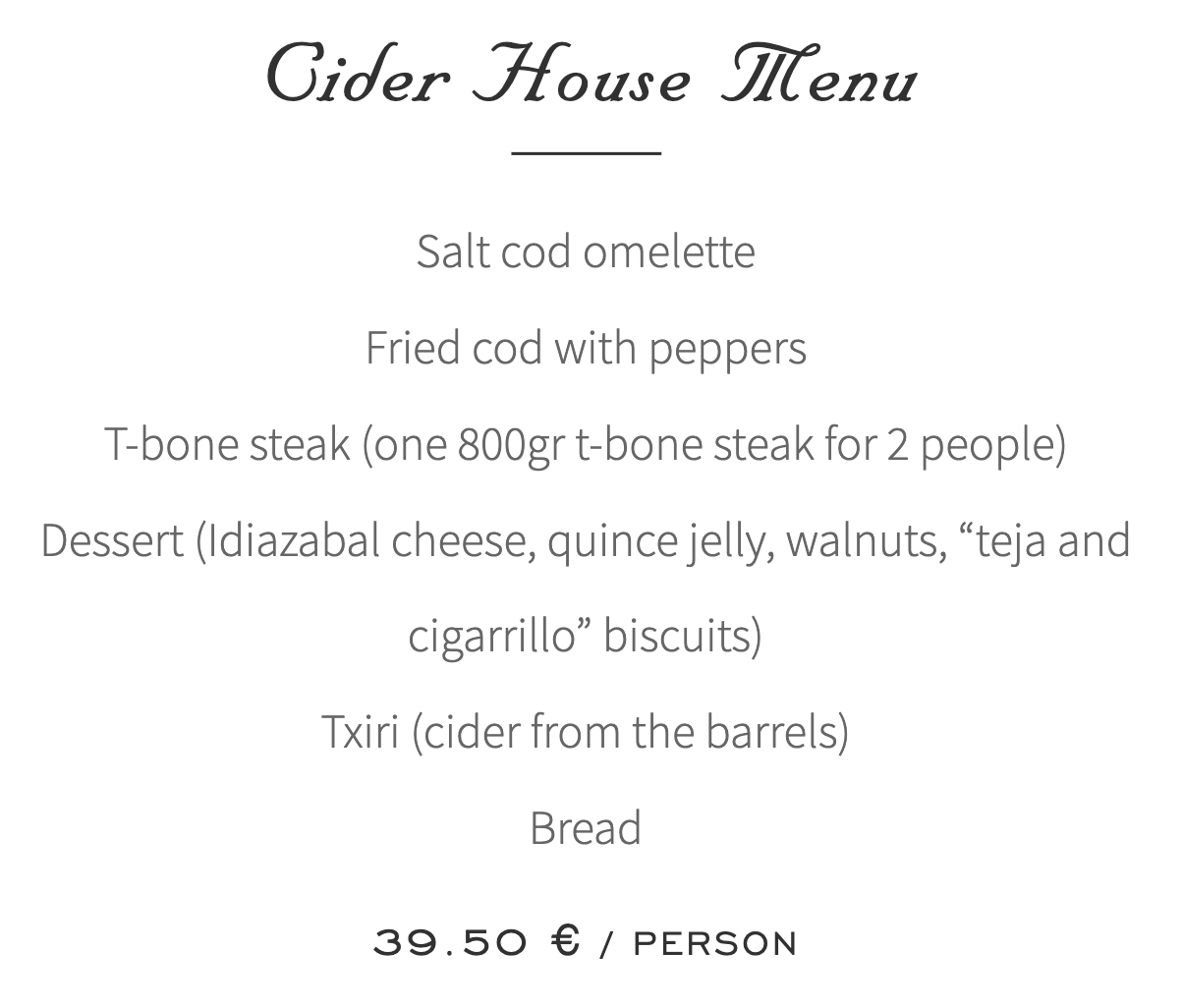 Petritegi is a cider house that is a 20-minute drive outside the city (get a taxi!). This is a no-frills Basque dining experience. You get unlimited cider refills, where you can try different varieties from a number of barrels.