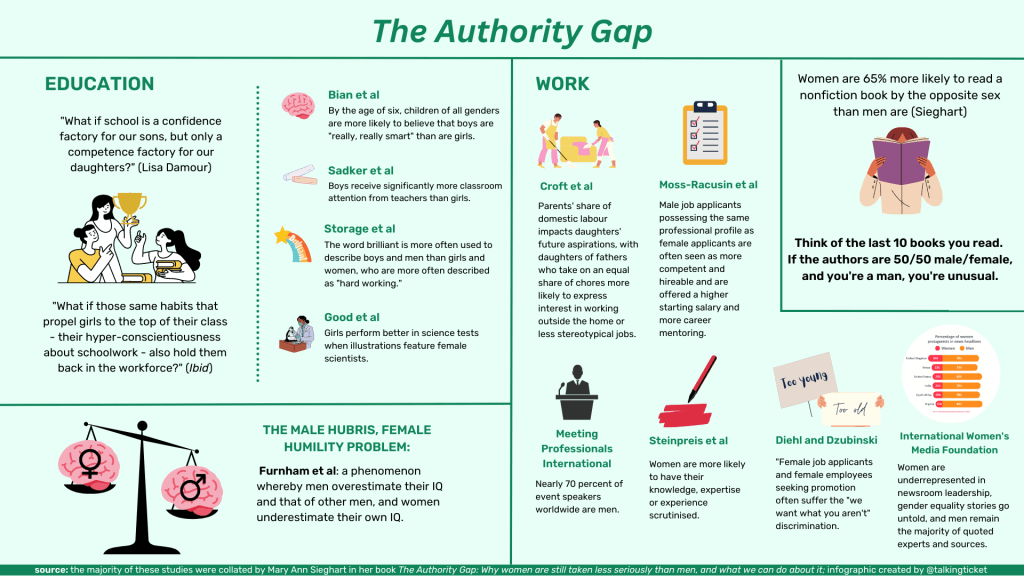 I’ve collated some of these phenomena in line with what writer Mary Ann Sieghart has coined “The Authority Gap.”