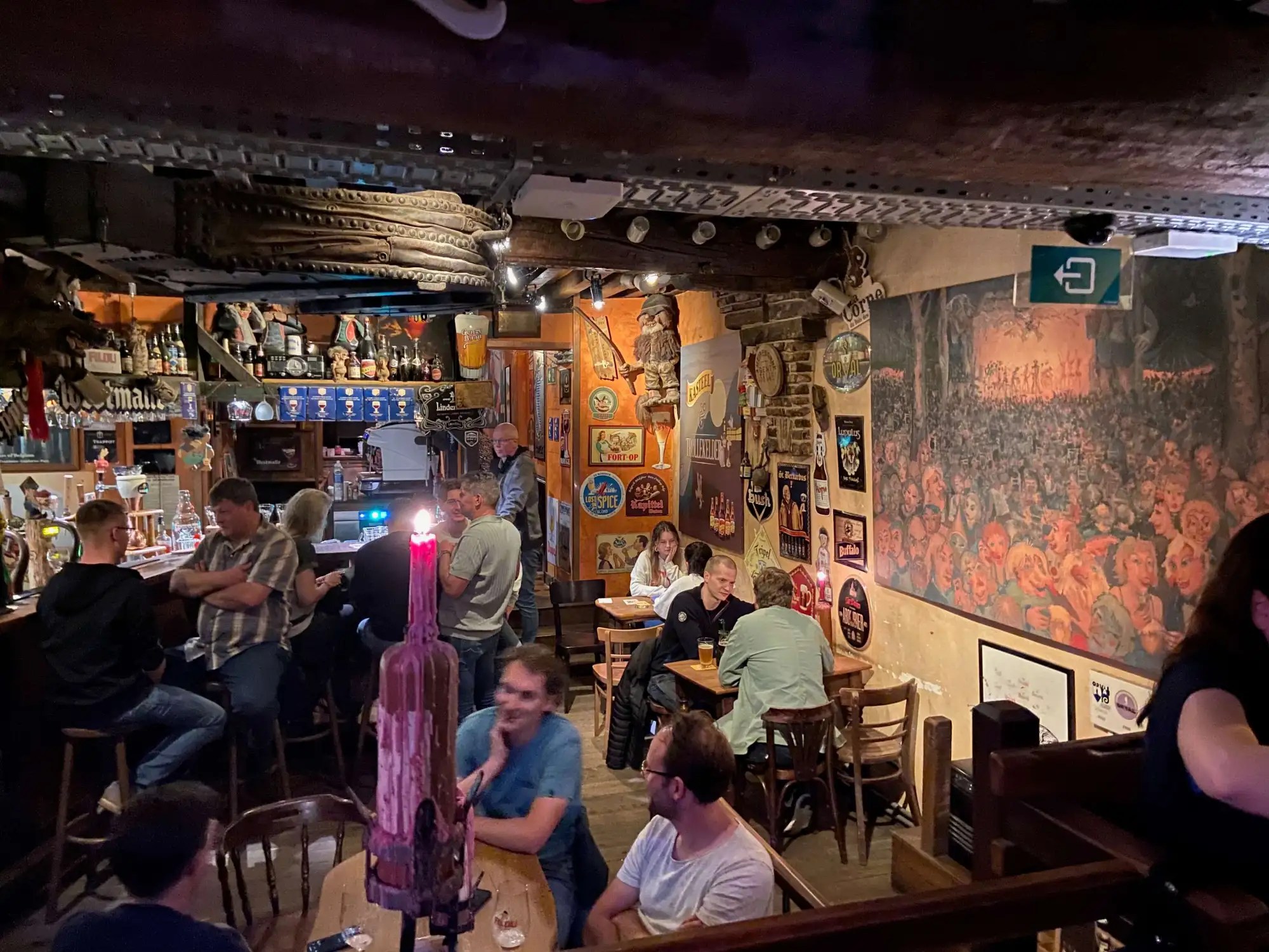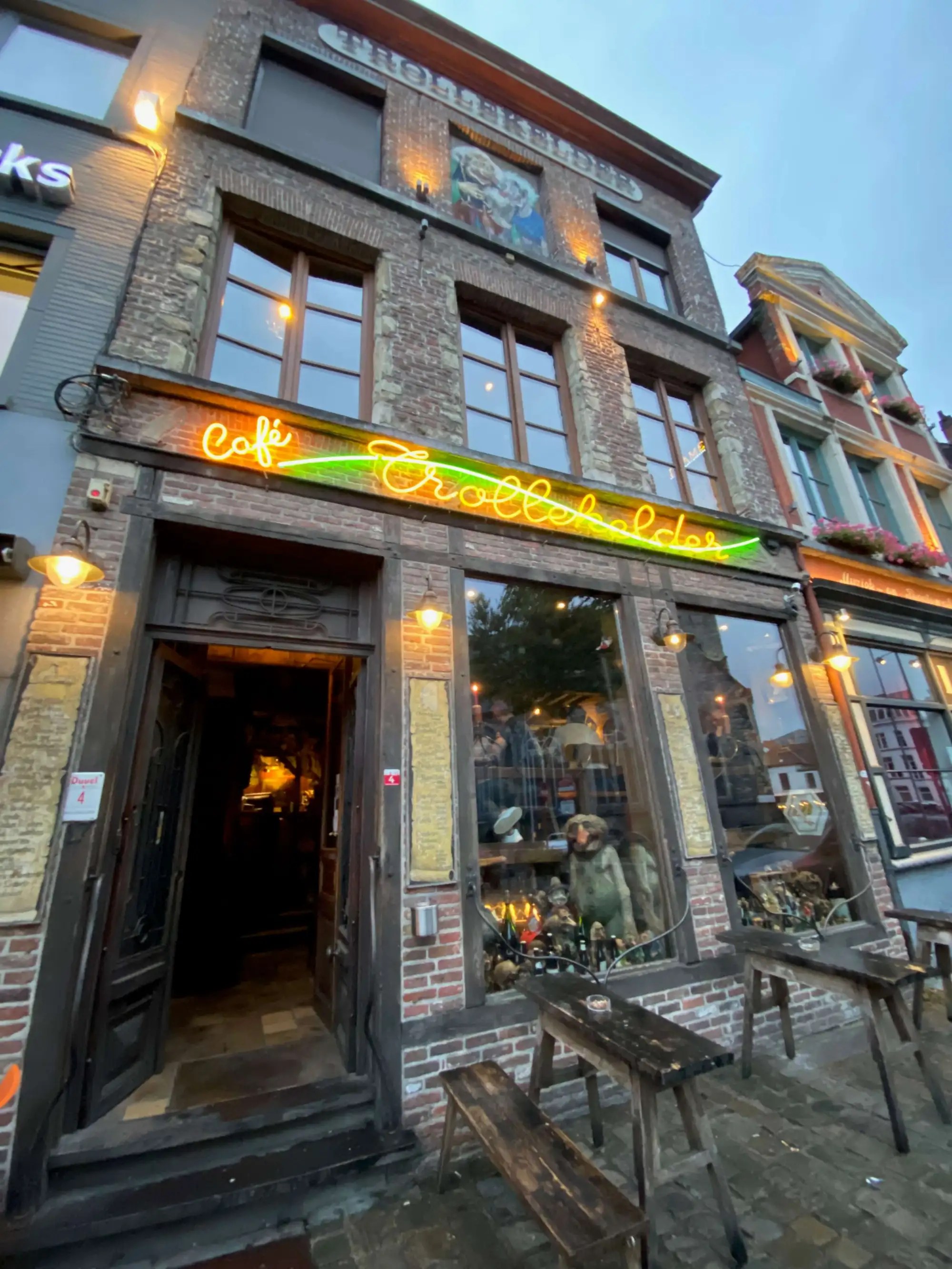 Trollkelder – meaning Troll Cellar – is an absolute delight that offers a menu of more than 300 Belgian beers (the house beer is the Trollenbier). This basement bar was a library until the 1980s. The first bar manager’s wife loved trolls and mythological creatures, hence the theme. Even a visit to the toilets is trippy, where every inch of the walls is plastered with beer caps.