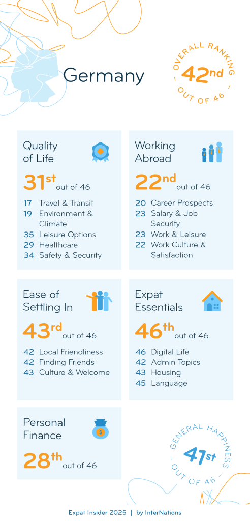 In the 2025 Inter Nations survey, foreigners in Germany ranked it 41st out of 46 for general happiness. Ouch.